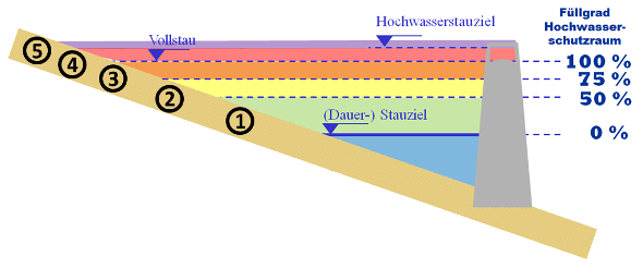 - Der Hochwasserwasserschutzraum wird bis zu 50% in Anspruch genommen.