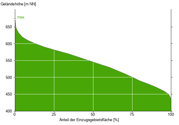 Die hypsographische Kurve zeigt die Höhenlagen und die Gefälleverhältnisse im Einzugsgebiet.