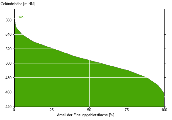 Die hypsographische Kurve zeigt die Höhenlagen und die Gefälleverhältnisse im Einzugsgebiet.