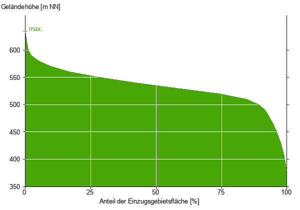 Die hypsographische Kurve zeigt die Höhenlagen und die Gefälleverhältnisse im Einzugsgebiet.