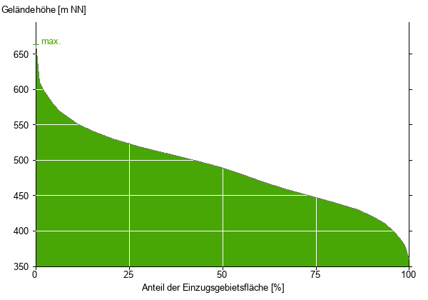 Die hypsographische Kurve zeigt die Höhenlagen und die Gefälleverhältnisse im Einzugsgebiet.