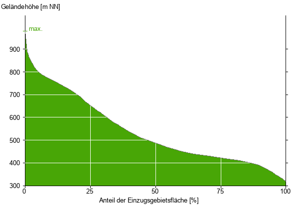 Die hypsographische Kurve zeigt die Höhenlagen und die Gefälleverhältnisse im Einzugsgebiet.