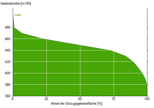 Die hypsographische Kurve zeigt die Höhenlagen und die Gefälleverhältnisse im Einzugsgebiet.