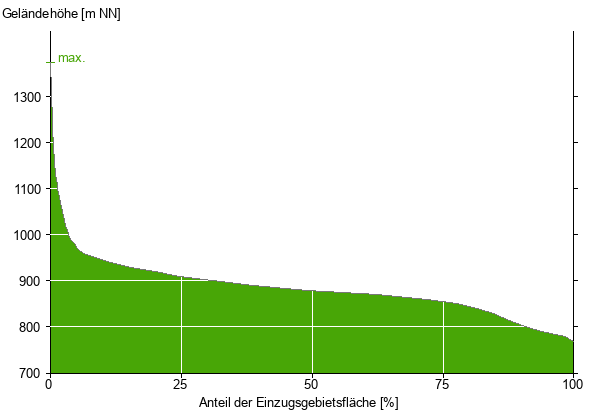 Die hypsographische Kurve zeigt die Höhenlagen und die Gefälleverhältnisse im Einzugsgebiet.
