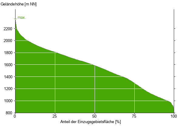 Die hypsographische Kurve zeigt die Höhenlagen und die Gefälleverhältnisse im Einzugsgebiet.