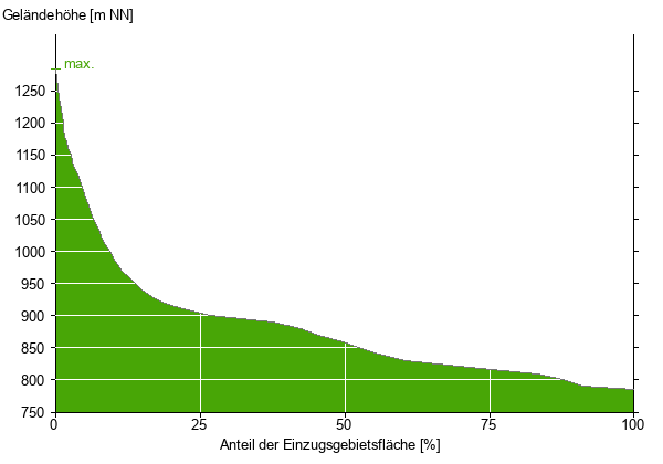 Die hypsographische Kurve zeigt die Höhenlagen und die Gefälleverhältnisse im Einzugsgebiet.