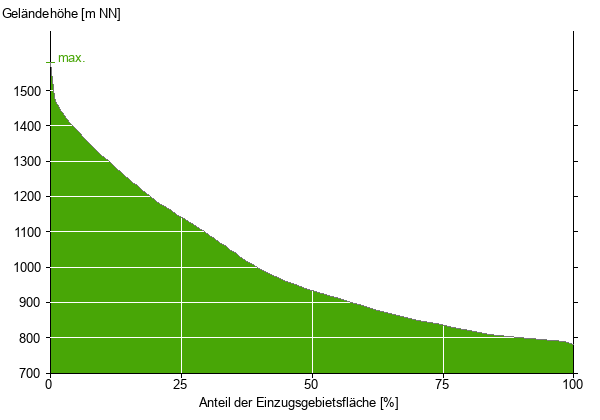 Die hypsographische Kurve zeigt die Höhenlagen und die Gefälleverhältnisse im Einzugsgebiet.