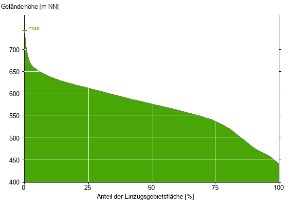 Die hypsographische Kurve zeigt die Höhenlagen und die Gefälleverhältnisse im Einzugsgebiet.