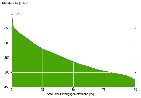 Die hypsographische Kurve zeigt die Höhenlagen und die Gefälleverhältnisse im Einzugsgebiet.