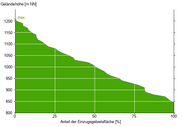 Die hypsographische Kurve zeigt die Höhenlagen und die Gefälleverhältnisse im Einzugsgebiet.