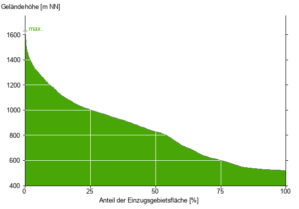 Die hypsographische Kurve zeigt die Höhenlagen und die Gefälleverhältnisse im Einzugsgebiet.