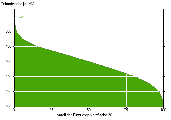 Die hypsographische Kurve zeigt die Höhenlagen und die Gefälleverhältnisse im Einzugsgebiet.