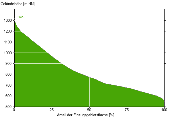 Die hypsographische Kurve zeigt die Höhenlagen und die Gefälleverhältnisse im Einzugsgebiet.