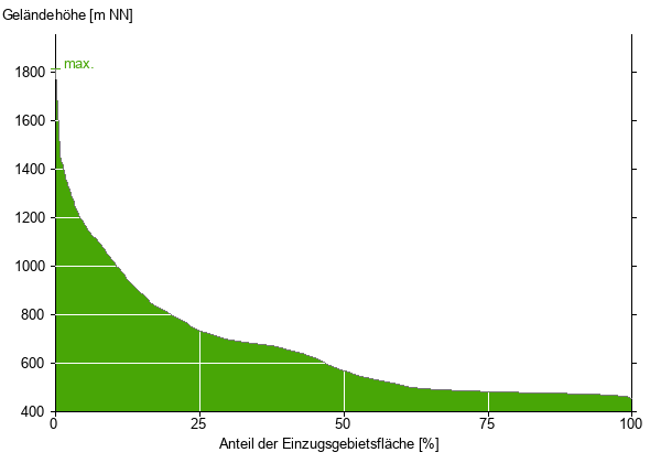 Die hypsographische Kurve zeigt die Höhenlagen und die Gefälleverhältnisse im Einzugsgebiet.