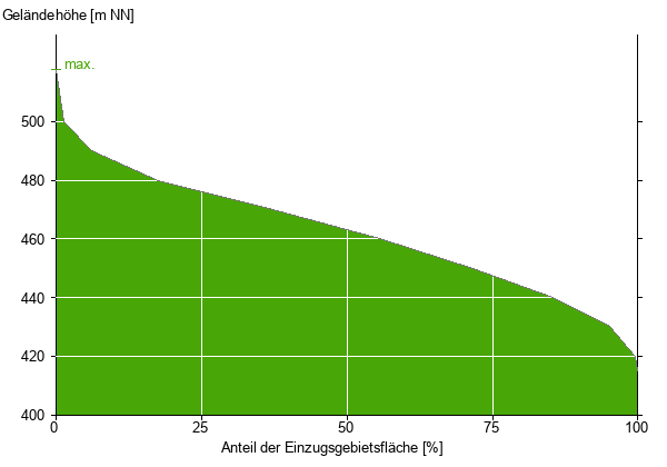 Die hypsographische Kurve zeigt die Höhenlagen und die Gefälleverhältnisse im Einzugsgebiet.