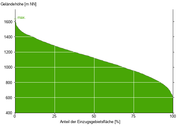 Die hypsographische Kurve zeigt die Höhenlagen und die Gefälleverhältnisse im Einzugsgebiet.
