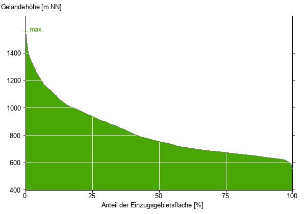 Die hypsographische Kurve zeigt die Höhenlagen und die Gefälleverhältnisse im Einzugsgebiet.
