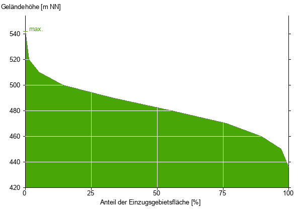Die hypsographische Kurve zeigt die Höhenlagen und die Gefälleverhältnisse im Einzugsgebiet.