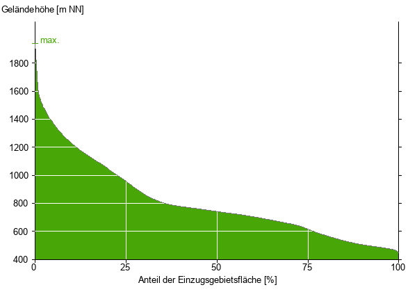 Die hypsographische Kurve zeigt die Höhenlagen und die Gefälleverhältnisse im Einzugsgebiet.