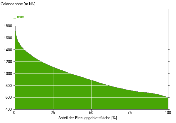 Die hypsographische Kurve zeigt die Höhenlagen und die Gefälleverhältnisse im Einzugsgebiet.