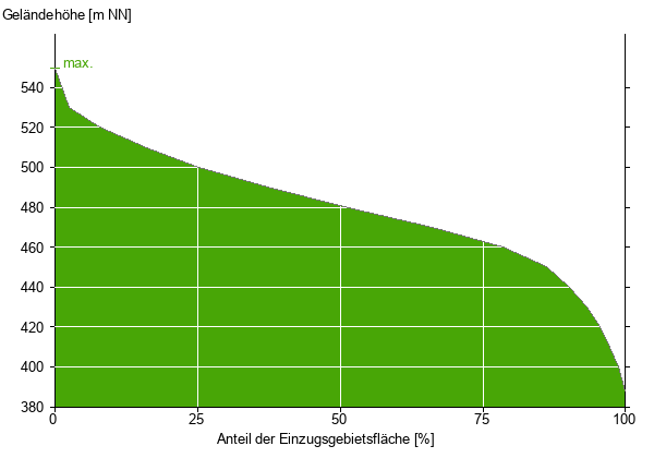 Die hypsographische Kurve zeigt die Höhenlagen und die Gefälleverhältnisse im Einzugsgebiet.