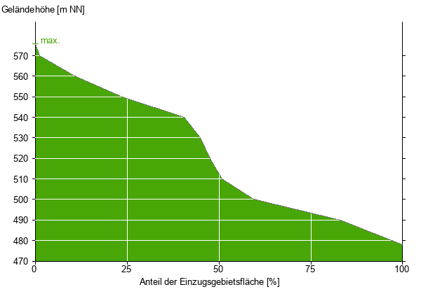 Die hypsographische Kurve zeigt die Höhenlagen und die Gefälleverhältnisse im Einzugsgebiet.
