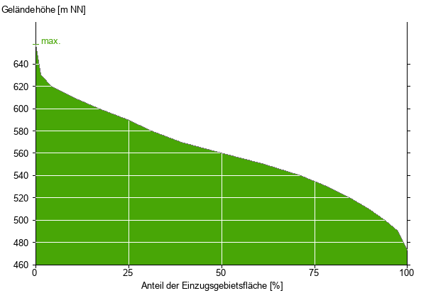 Die hypsographische Kurve zeigt die Höhenlagen und die Gefälleverhältnisse im Einzugsgebiet.