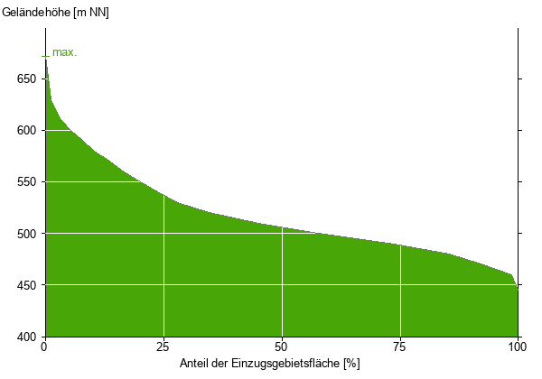Die hypsographische Kurve zeigt die Höhenlagen und die Gefälleverhältnisse im Einzugsgebiet.
