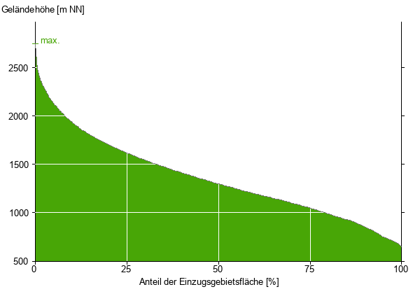 Die hypsographische Kurve zeigt die Höhenlagen und die Gefälleverhältnisse im Einzugsgebiet.