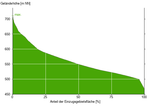 Die hypsographische Kurve zeigt die Höhenlagen und die Gefälleverhältnisse im Einzugsgebiet.