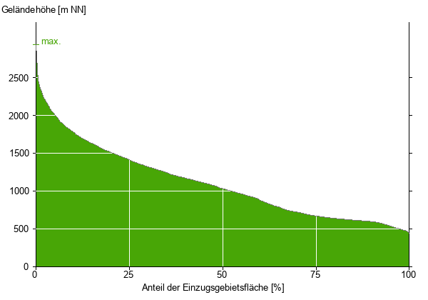 Die hypsographische Kurve zeigt die Höhenlagen und die Gefälleverhältnisse im Einzugsgebiet.