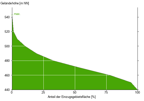 Die hypsographische Kurve zeigt die Höhenlagen und die Gefälleverhältnisse im Einzugsgebiet.
