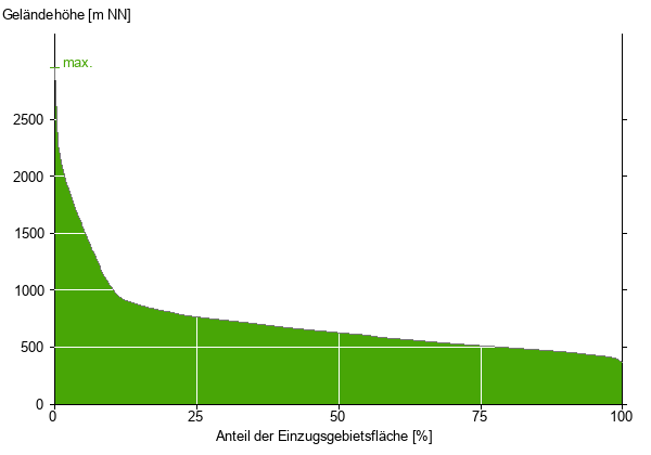 Die hypsographische Kurve zeigt die Höhenlagen und die Gefälleverhältnisse im Einzugsgebiet.