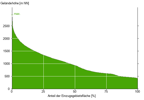 Die hypsographische Kurve zeigt die Höhenlagen und die Gefälleverhältnisse im Einzugsgebiet.