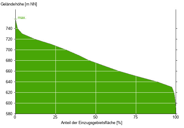 Die hypsographische Kurve zeigt die Höhenlagen und die Gefälleverhältnisse im Einzugsgebiet.