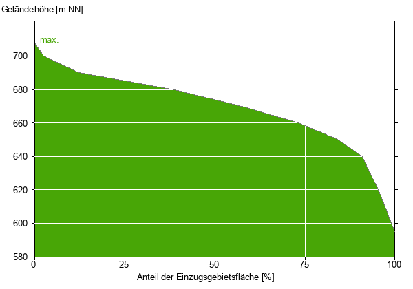 Die hypsographische Kurve zeigt die Höhenlagen und die Gefälleverhältnisse im Einzugsgebiet.