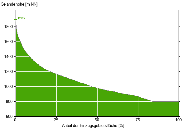 Die hypsographische Kurve zeigt die Höhenlagen und die Gefälleverhältnisse im Einzugsgebiet.