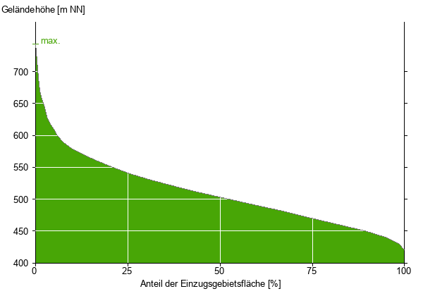 Die hypsographische Kurve zeigt die Höhenlagen und die Gefälleverhältnisse im Einzugsgebiet.