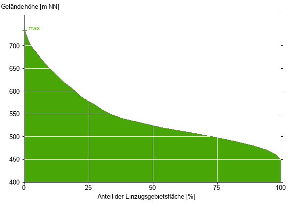 Die hypsographische Kurve zeigt die Höhenlagen und die Gefälleverhältnisse im Einzugsgebiet.