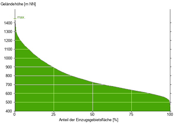 Die hypsographische Kurve zeigt die Höhenlagen und die Gefälleverhältnisse im Einzugsgebiet.