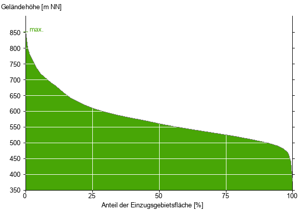 Die hypsographische Kurve zeigt die Höhenlagen und die Gefälleverhältnisse im Einzugsgebiet.
