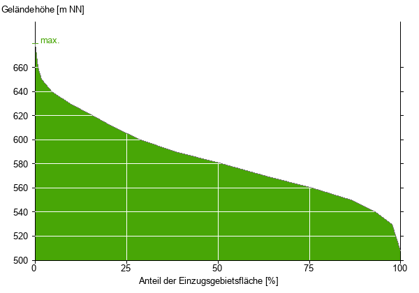 Die hypsographische Kurve zeigt die Höhenlagen und die Gefälleverhältnisse im Einzugsgebiet.
