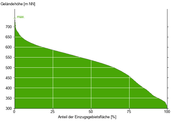 Die hypsographische Kurve zeigt die Höhenlagen und die Gefälleverhältnisse im Einzugsgebiet.
