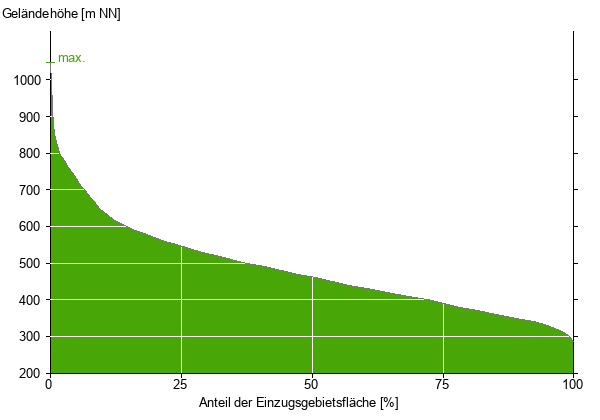 Die hypsographische Kurve zeigt die Höhenlagen und die Gefälleverhältnisse im Einzugsgebiet.
