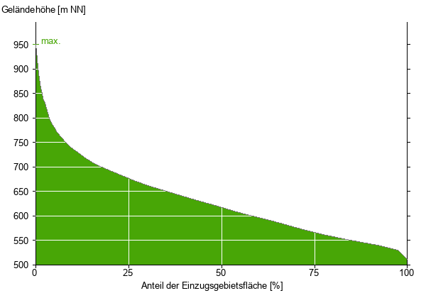 Die hypsographische Kurve zeigt die Höhenlagen und die Gefälleverhältnisse im Einzugsgebiet.