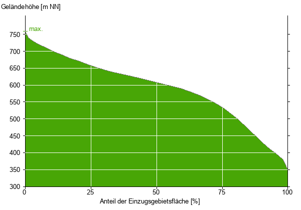 Die hypsographische Kurve zeigt die Höhenlagen und die Gefälleverhältnisse im Einzugsgebiet.