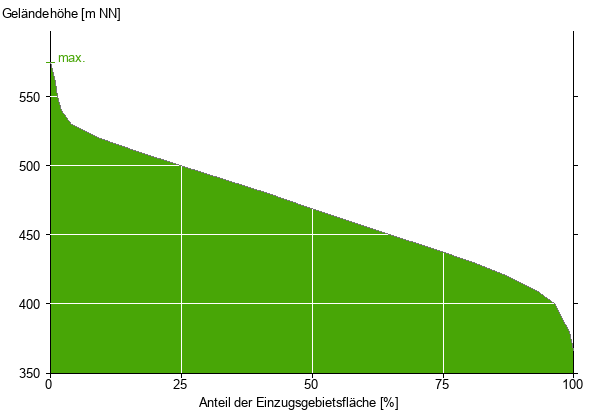 Die hypsographische Kurve zeigt die Höhenlagen und die Gefälleverhältnisse im Einzugsgebiet.