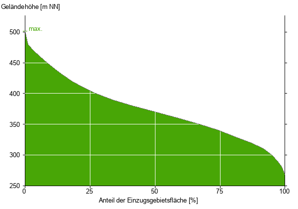 Die hypsographische Kurve zeigt die Höhenlagen und die Gefälleverhältnisse im Einzugsgebiet.