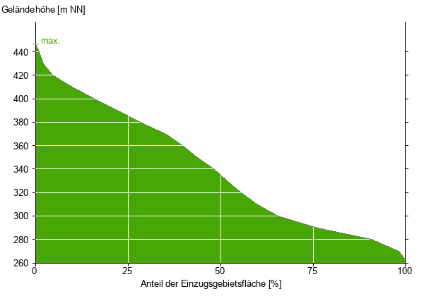 Die hypsographische Kurve zeigt die Höhenlagen und die Gefälleverhältnisse im Einzugsgebiet.