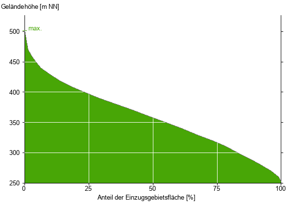 Die hypsographische Kurve zeigt die Höhenlagen und die Gefälleverhältnisse im Einzugsgebiet.